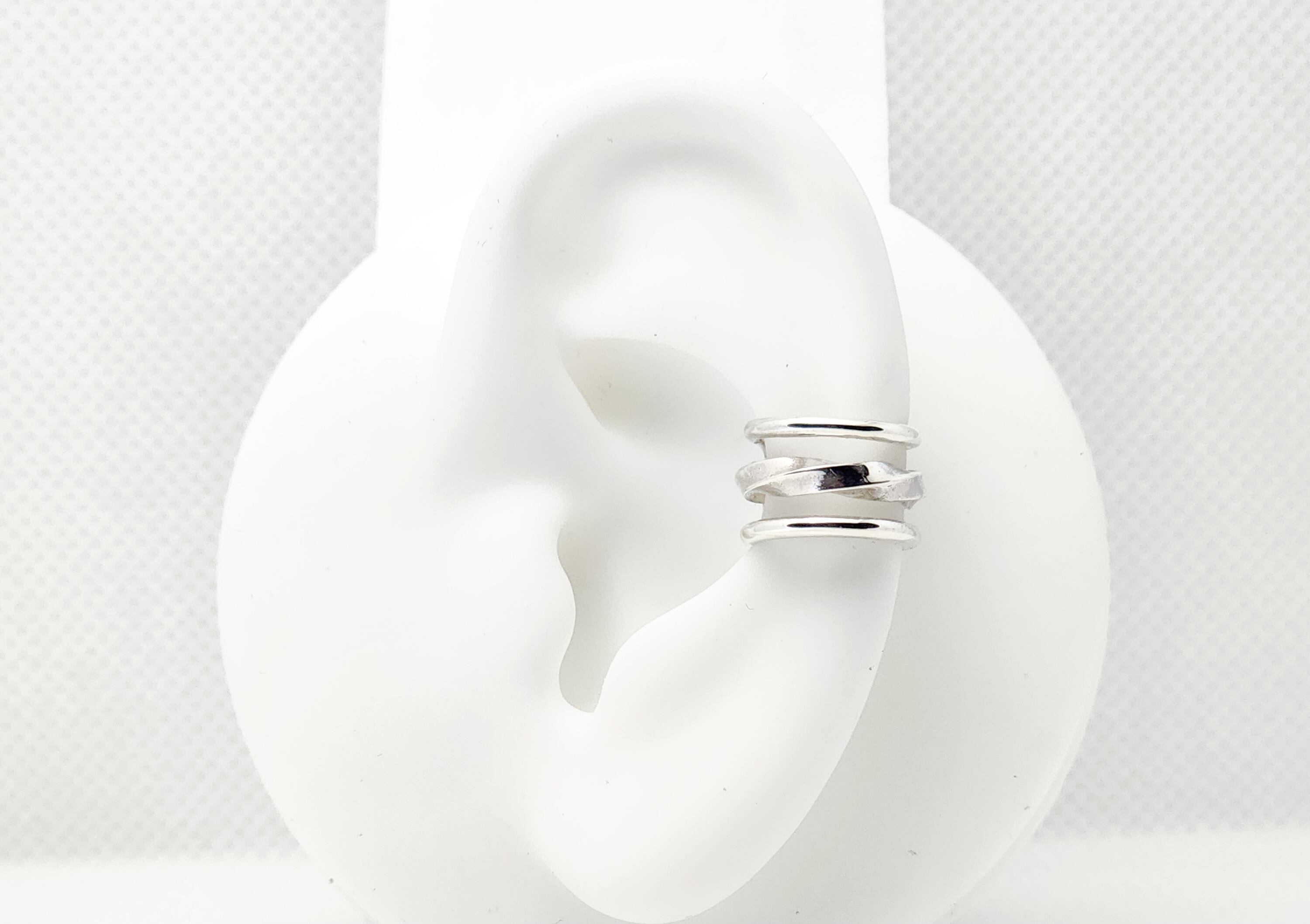 シルバーワイヤーと角線を捻った物を組み合わせたデザインのイヤーカフ
