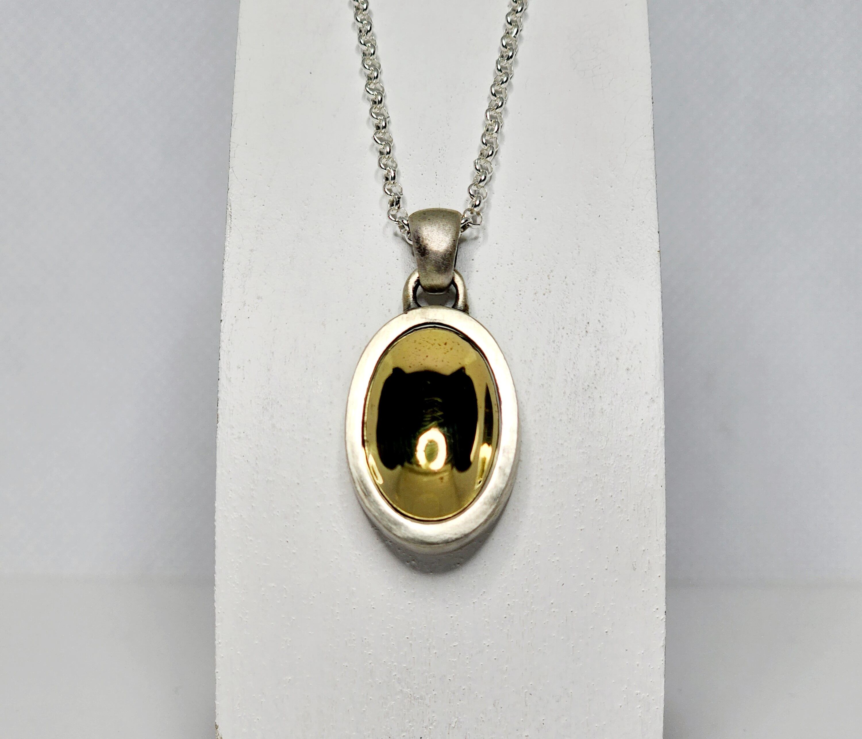 シルバーベースに窪んだオーバル型のブラス(真鍮)をはめ込んだペンダントトップ